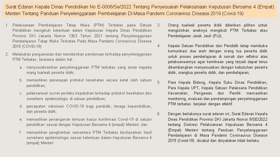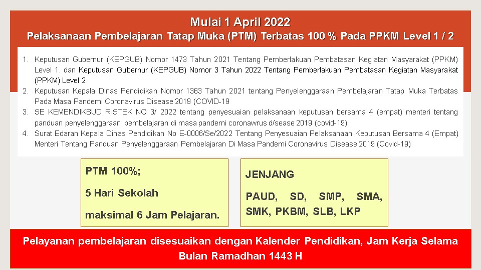 PELAKSANAAN PTM TERBATAS 100 %DI DKI JAKARTA